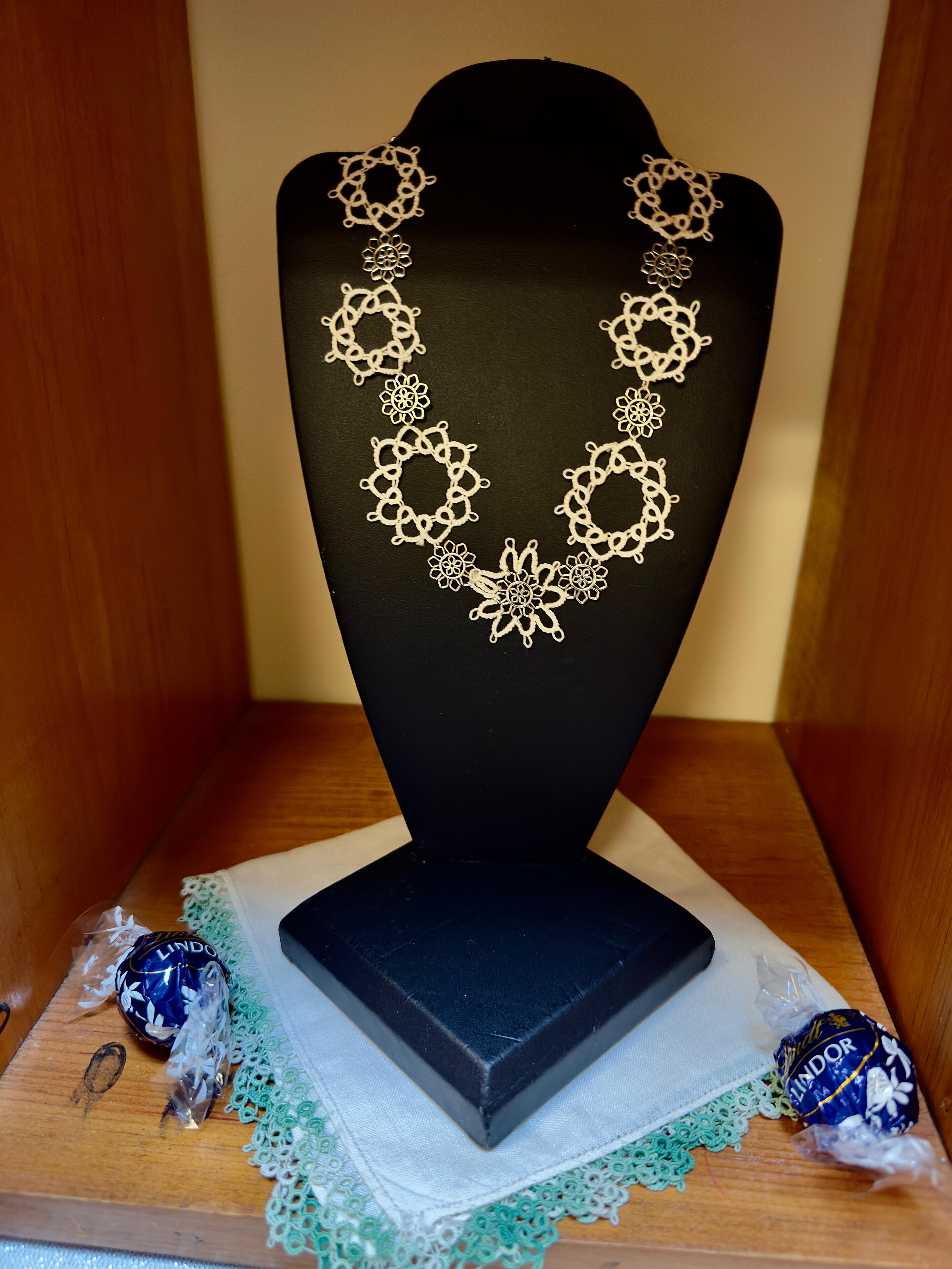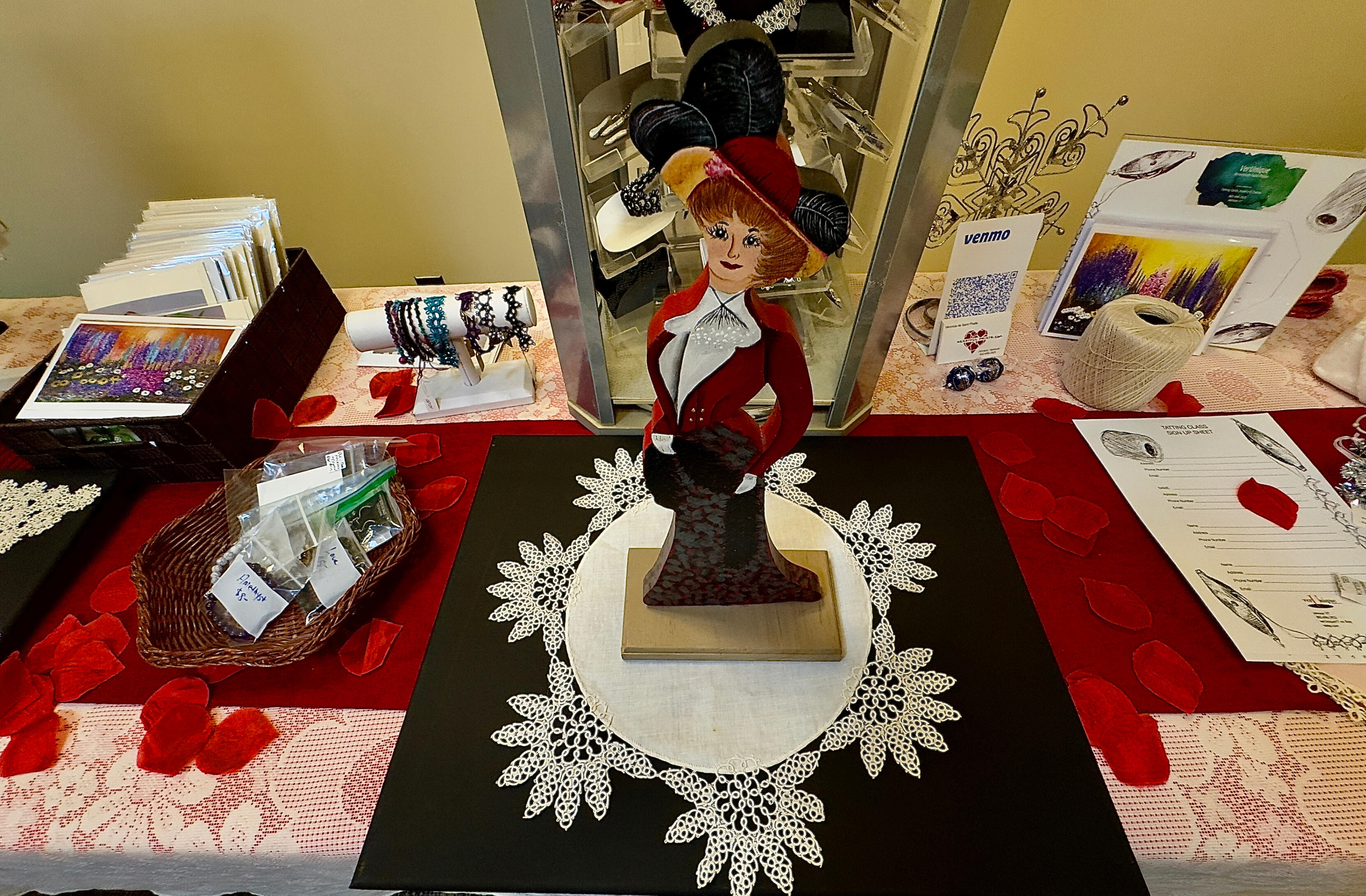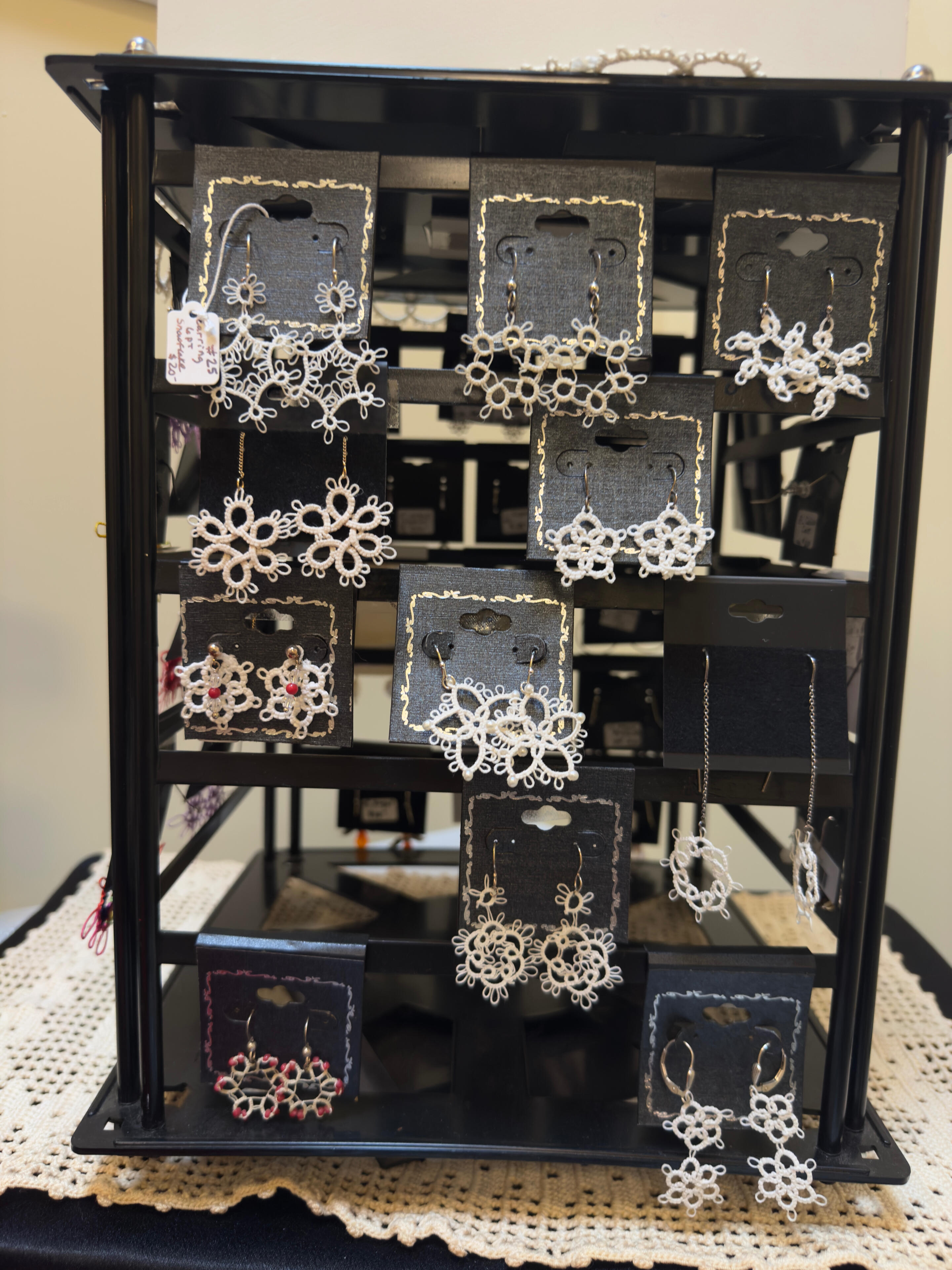 During this holiday season I will be on site Wednesday-Saturday from 10 am to 4 pm and Sunday 10 am ton4 pm. I have a second room next door to my painting exhibit with a great selection of tatted ornaments, tatted jewelry, fine art cards, photo cards, and smaller paintings on offer for holiday shopping.