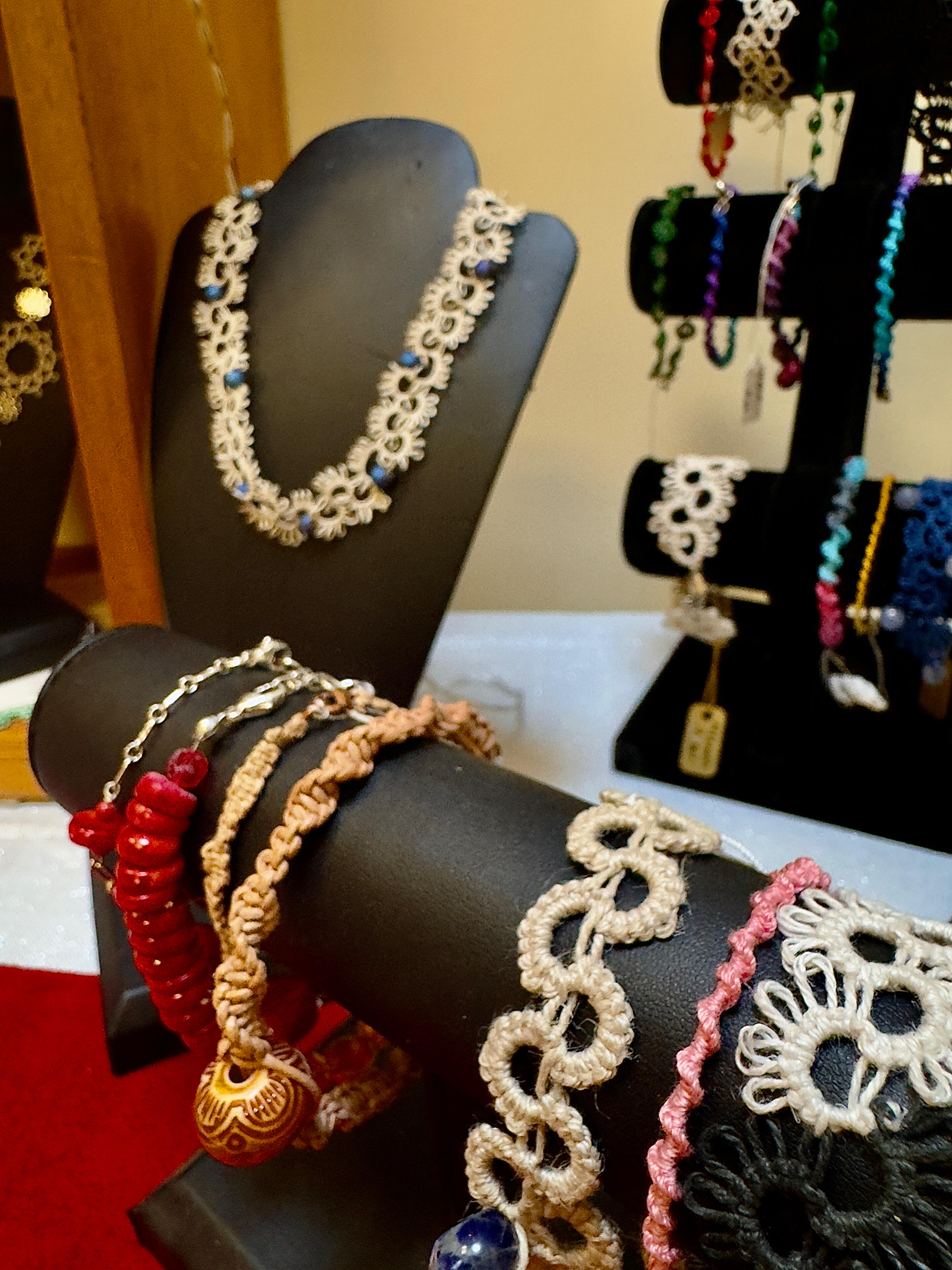 During this holiday season I will be on site Wednesday-Saturday from 10 am to 4 pm and Sunday 10 am ton4 pm. I have a second room next door to my painting exhibit with a great selection of tatted ornaments, tatted jewelry, fine art cards, photo cards, and smaller paintings on offer for holiday shopping.